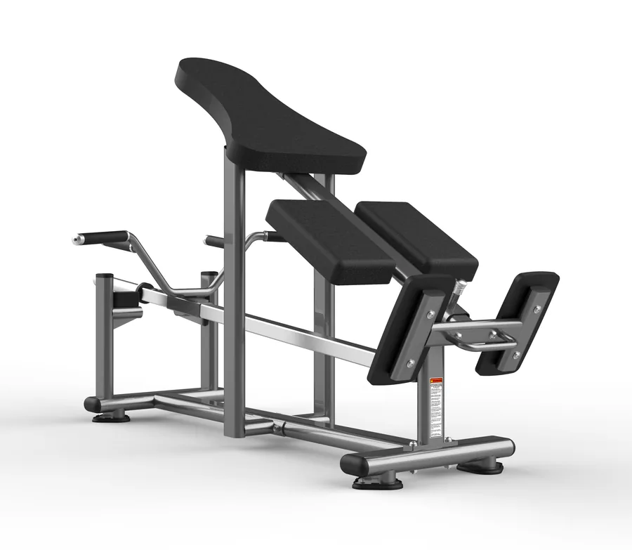 T-bar row en posición horizontal con soporte de pecho y agarre neutro. El remo más estricto del catálogo: cero impulso, máximo trabajo de espalda media e inferior.