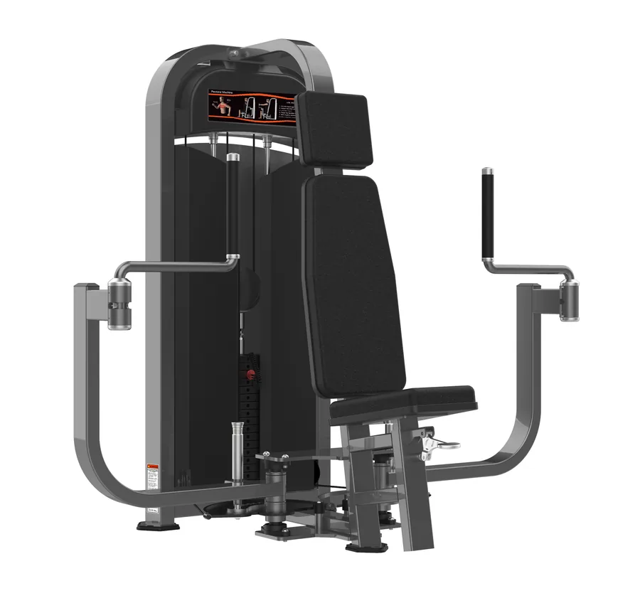 Máquina de aperturas para pectoral con movimiento convergente y asiento ajustable. El estiramiento y la contracción del pecho sin la inestabilidad de las mancuernas.