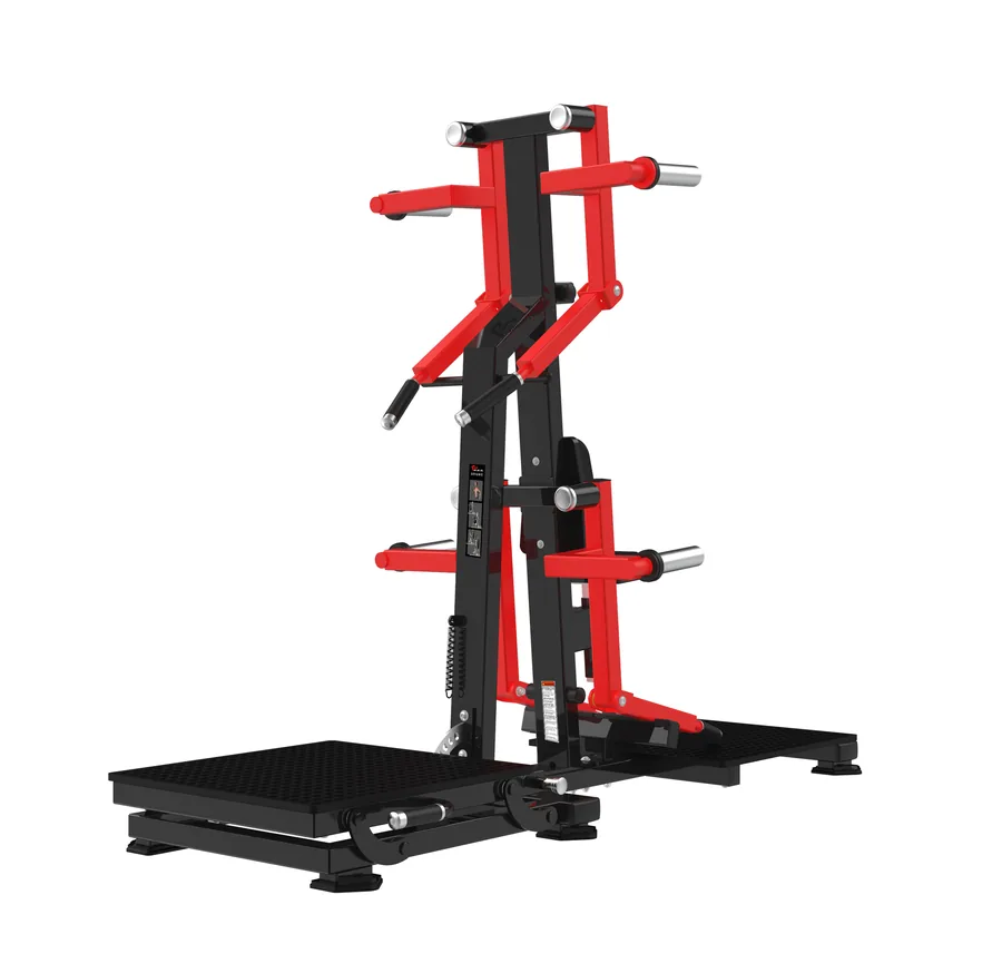 Elevaciones laterales y deltoides posterior de pie, carga en placas. El trabajo de hombro completo — medial y posterior — en el equipo más exigente del catálogo para hombro.