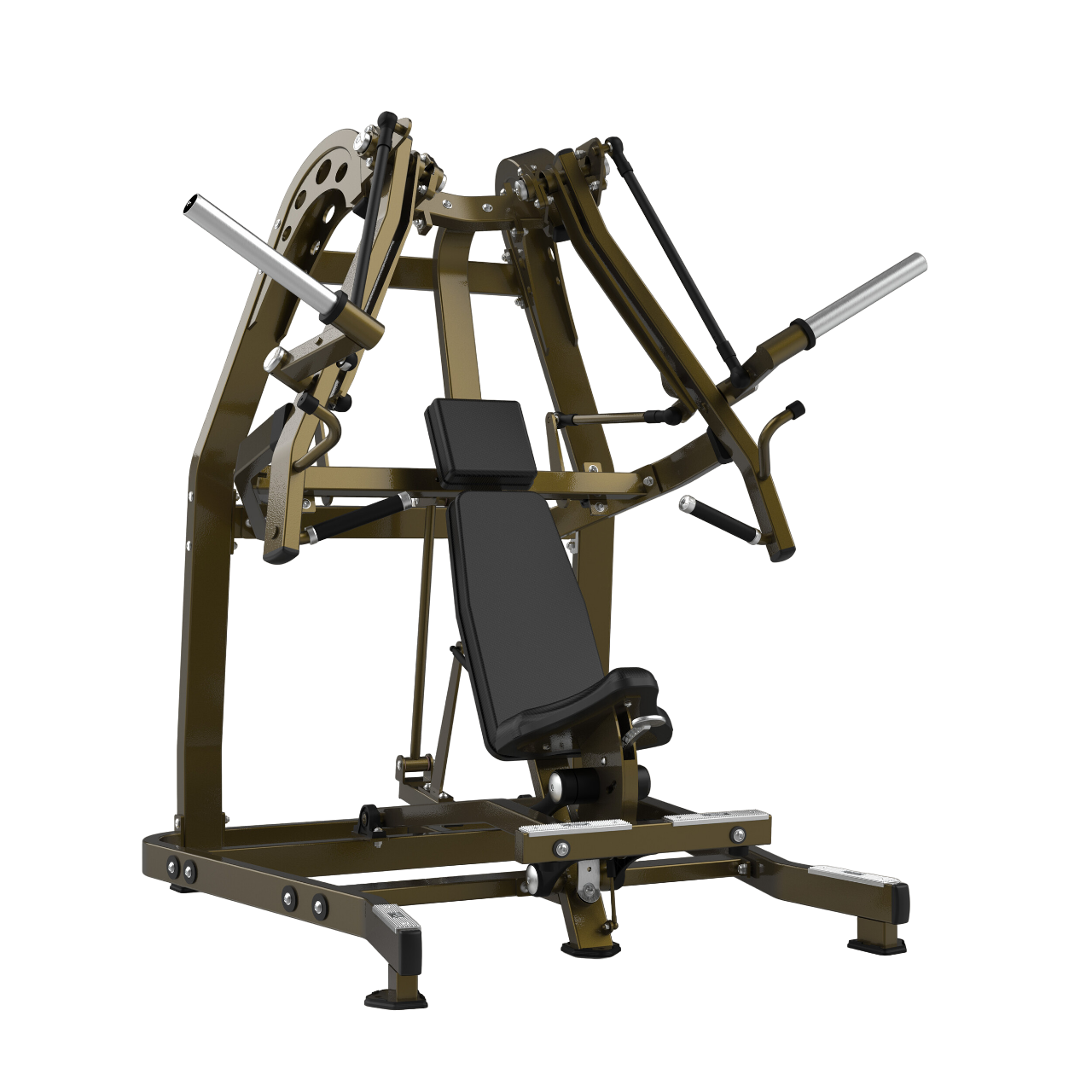 Plate loaded. Resistencia pura con placas olímpicas. Sin selector, sin límites.